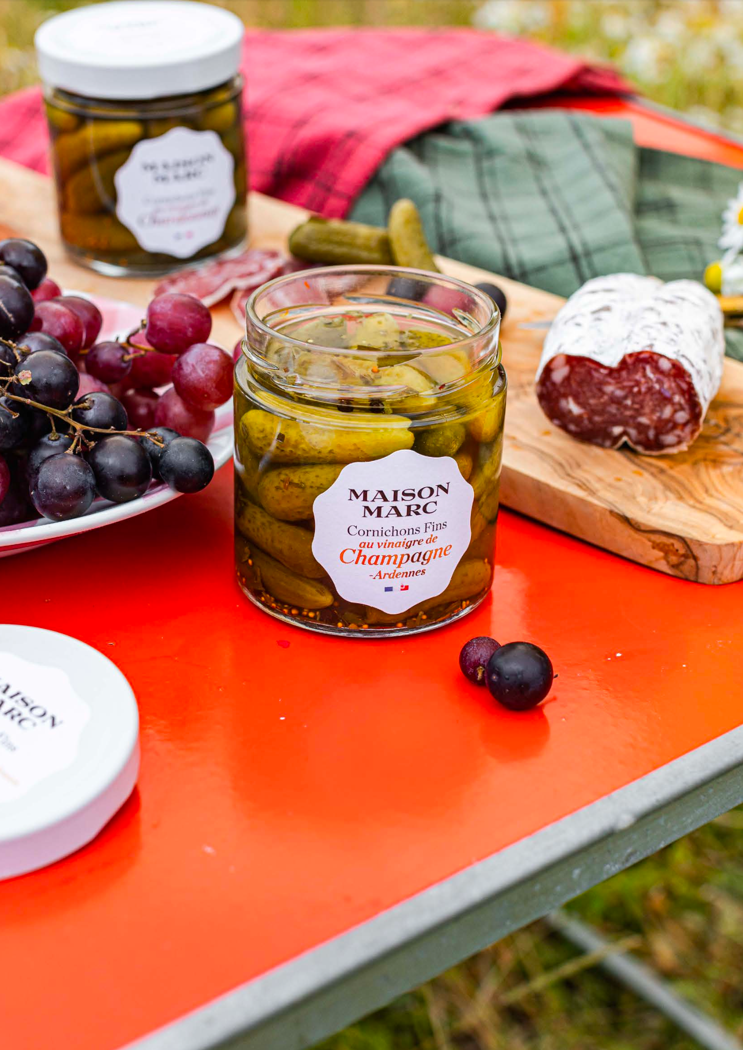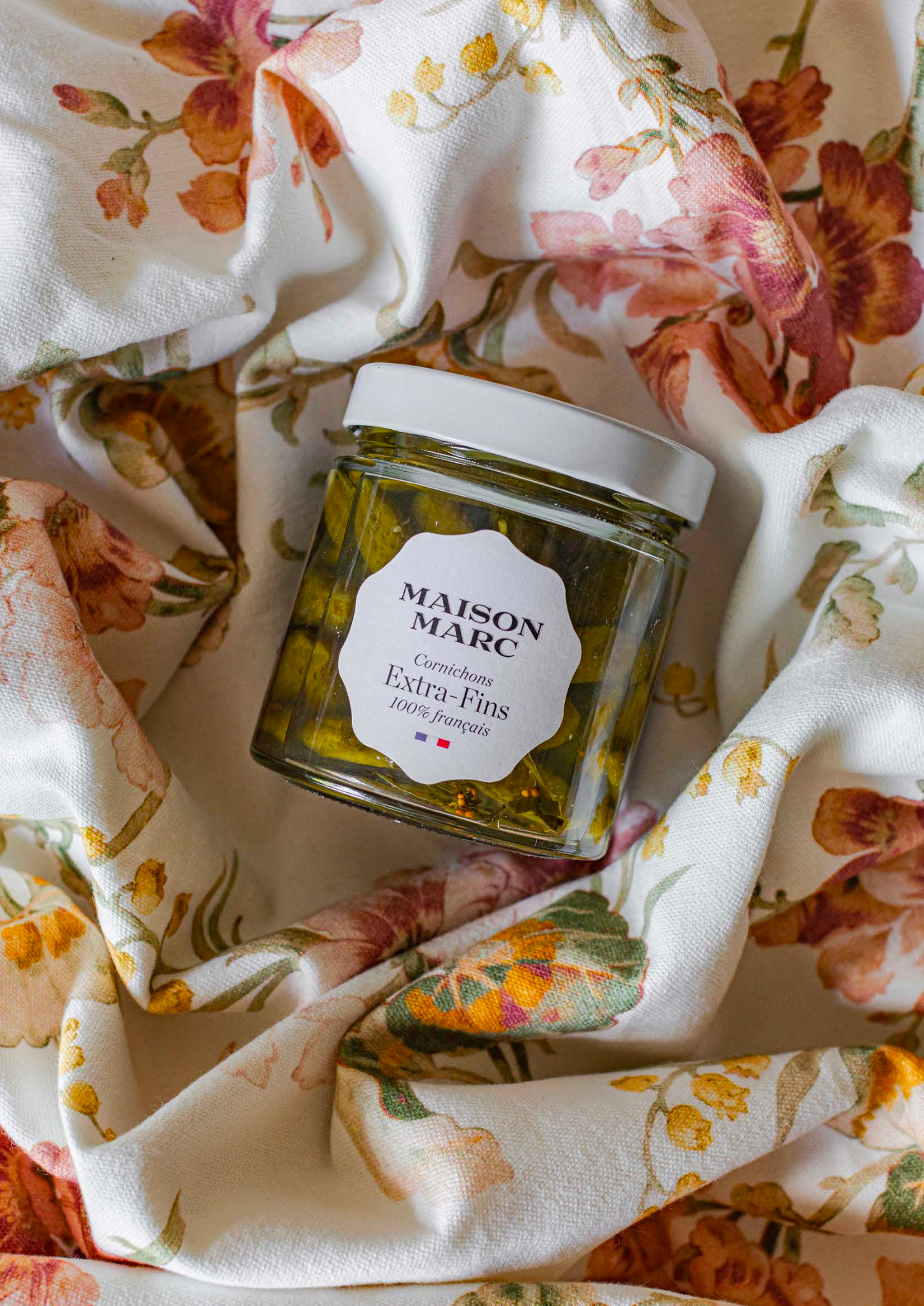 Che si tratti del Cornichon Extra-Fin, del Cornichon à l’Ancienne o delle versioni aromatizzate come i Cornichons Fins all'aceto di Champagne, Maison Marc è sinonimo di artigianalità e identità gastronomica francese: equilibrio perfetto tra acidità, croccantezza e naturalezza.